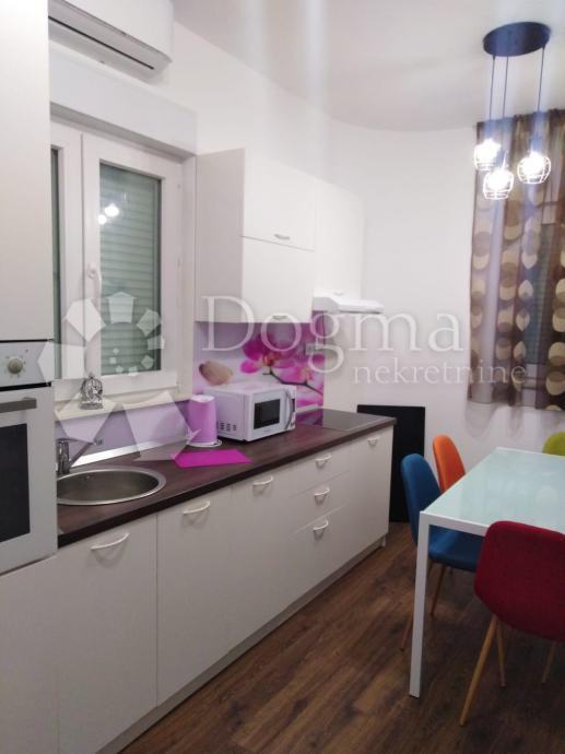 Potpuno je namješten i opremljen kućanskim uređajima (perilica posuđa, perilica rublja, tri