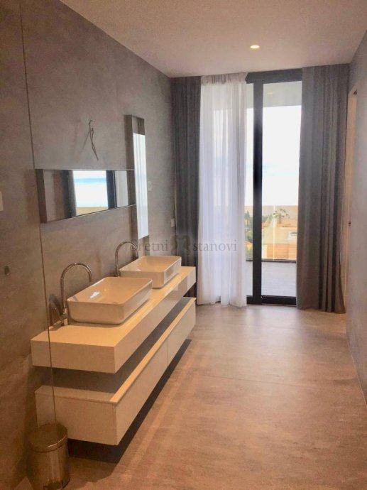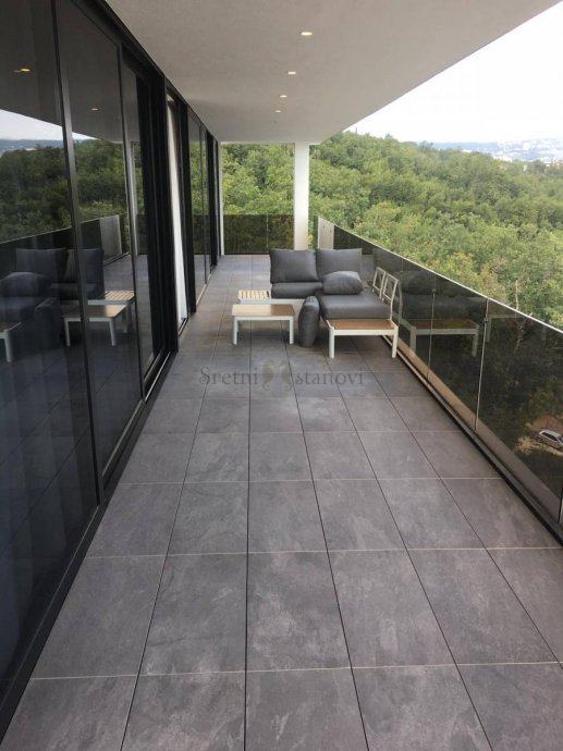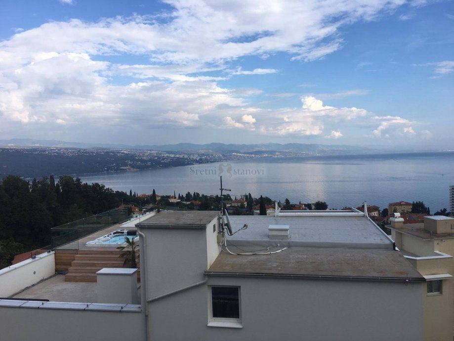 Prekrasni Luksuzni stan u novogradnji u Opatiji. Vrlo je prostrani, a sastoji se od tri spavaće sobe, open space: dnevnog boravka, kuhinje s blagovaonom, tri kupaone, saune, utility, wc-a i velike terase s predivnim pogledom na more . Grijanje je podno i fancoilerima. Parkirna mjesta su u garaži, a lift vodi direktno iz garaže do stana. Stan je moderno , u cijelosti namješten i uređen.