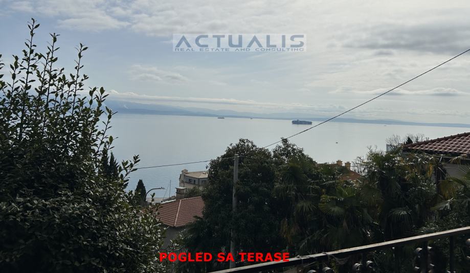 Stan u prizemlju zgrade, 1s + db površine 39 m2, etažiran, na mirnoj lokaciji, ispred palme i zelenilo, 250 m od mora, 600 m od centra Opatije (Slatina), , fantastičan pogled na more i cijeli Kvarner. Mogućnost kupnje cijelog prizemlja (+ stan od 60 m2).