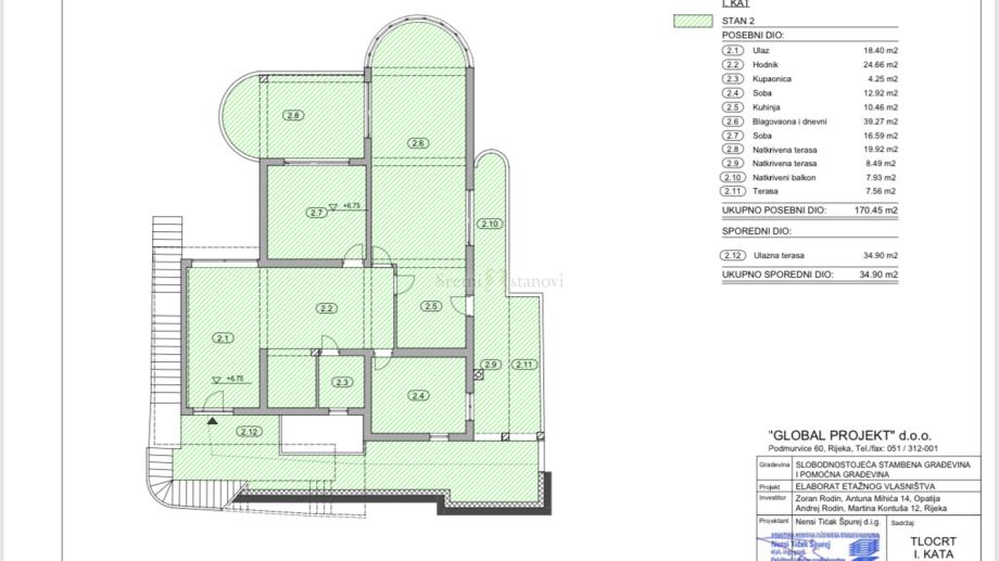 2.kat: hodnik, 2 spavace sobe , kupaonica, kuhinja s blagovaonom i dnevnim boravkom, balkon i 2 velike terase.