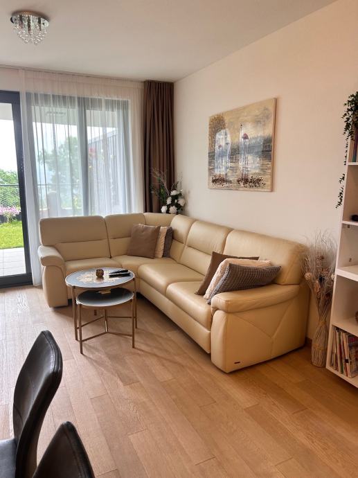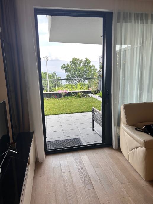 Stan se sastoji od 2 spavaće sobe sa kupaonicama i walk-in garderobama, "open space" ;dnevnog boravka sa blagovaonicom iz koje se izlazi na terasu i zelenu okućnicu veličine 90 m2