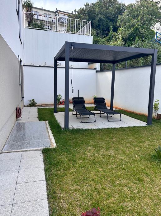 Direktno od vlasnika stan novogradnja smješten u zelenilu u prizemlju stambene zgrade s kojeg se pruža predivan pogled na more i veći dio Kvarnera.