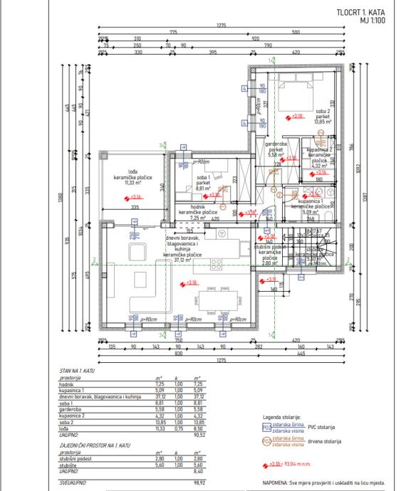 - na svim prozorima i vratima vanjske stolarije aluminijske rolete punjene poliuretanskom pjenom