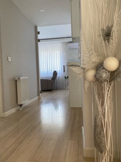 Stan ima dnevni boravak, blagovaonicu, ostavu, 2 balkona, kupatilo, dječju sobu, hodnik s plakarom, radnu sobu/walk in ormar, wellness sobu (krevet, sauna, jacuzzi).