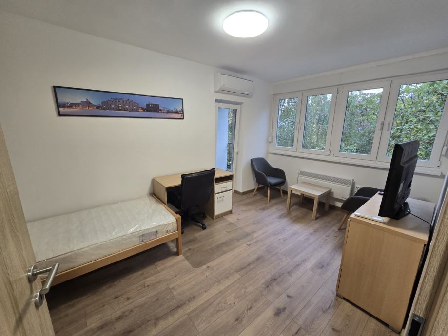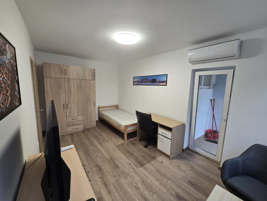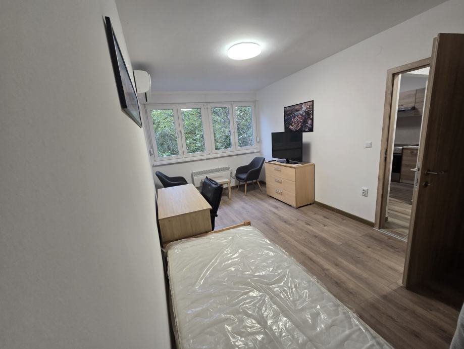 Stan je na izvrsnoj lokaciji, preko puta je NTL i mala tržnica, a na par koraka Mlinar, ljekarna Hauska i par kafića. Sve što je potrebno. Blizu je kampusa i autobusne stanice. Ispred zgrade postoji javni parking. Stan ima potpuno opremljenu novu kuhinju, hladnjak, indukcijski štednjak, mikrovalnu pećnicu, napu i perilicu za pranje rublja - sve što je potrebno. Pregršt prostora za pohranu, kao što je vidljivo na slikama. Glavna soba ima izlaz na balkon. Krevet za jednu osobu, dvije fotelje, radni stol, dva ormara, pametni televizor. Kupaonica je nova također s električnim bojlerom.