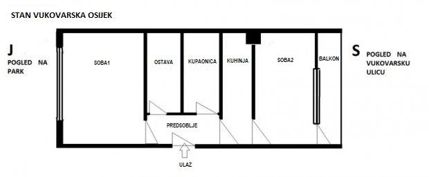 Stan: Osijek, Vukovarska ulica, blizina STUC-a 40 m2 (iznajmljivanje)