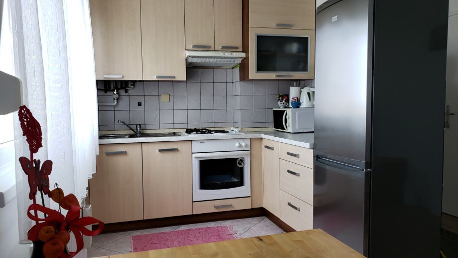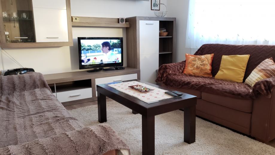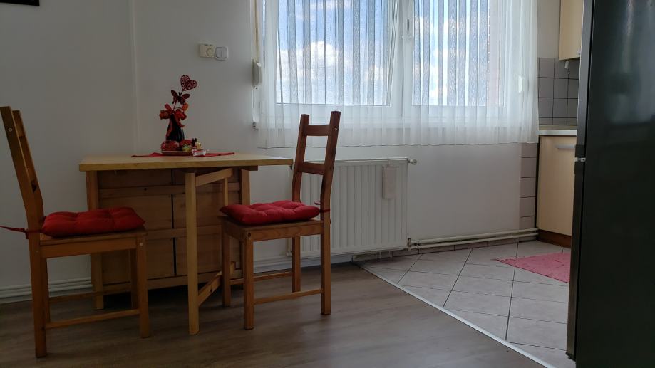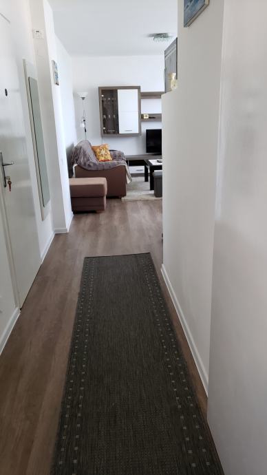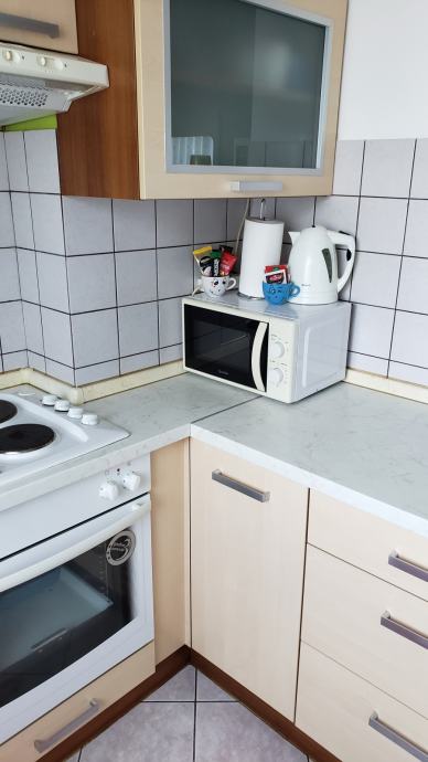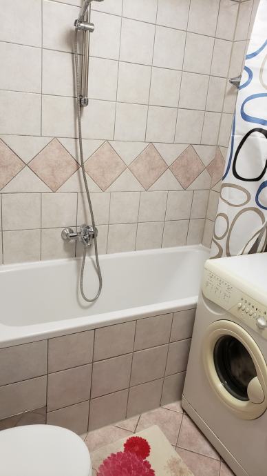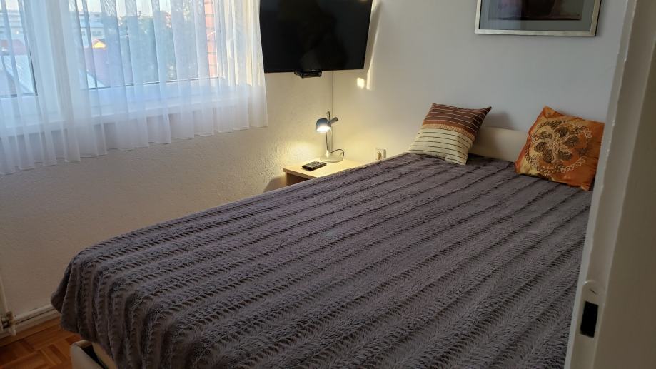 Miran, čist i renoviran stan (44 m2) nalazi se na 3.katu zgrade; sastoji se od dnevne sobe otvorenog koncepta spojene s kuhinjom i blagavaoničkim dijelom, odvojene spavaće sobe, ostave, kupaonice i predsoblja te spremišta u podrumu . Prostorije su potpuno namještene (u svakoj sobi TV, nova mikrovalna, kuhalo za vodu, mikser, toster, fen, usisavač, glačalo, sušilo za rublje...) i spremne za useljenje. Stan je orijentiran sjeverno, s pogledom na zelenilo i konkatedralu. Ispred zgrade je besplatni javni parking, na nekoliko koraka frizer i dućan. Blizina trg. centra Merkator, tramvaja, vrtića, škole, ljekarne, pošte, južne obilaznice. Napomena: prilikom početka najma se plaća polog u vrijednosti 400 eura koji će biti vraćen po završetku najma umanjen za eventualna oštećenja. Cijena najma je 400 eura + male režije (struja, voda, plin, smeće - otprilike 50 eura). Grijanje je etažno plinsko centralno, postoji i klima uređaj u dnevnoj sobi.