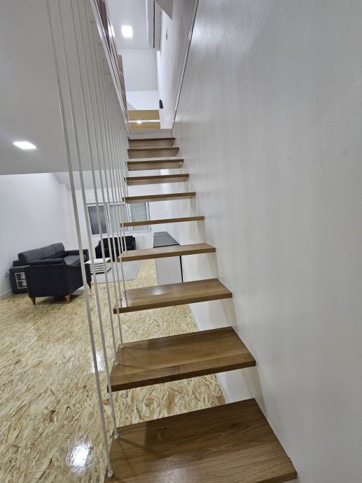 Ulazeći u stan, odmah ćete primijetiti svijetli i prozračni dnevni boravak s visokim stropovima koji naglašavaju prostranost prostora. Buduća kuhinja je pozicionirana tako da se iz nje pruža pogled na cijeli dnevni boravak. Stan ima jednu kupaonicu s modernim sanitarijama i tuš kabinom. Galerija od 15m2, koja se prostire iznad dnevnog boravka, savršeno funkcionira kao spavaća soba ili radni kutak, dok tavanski prostor pruža dodatni skladišni kapacitet.