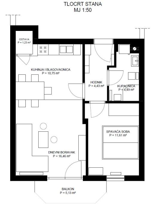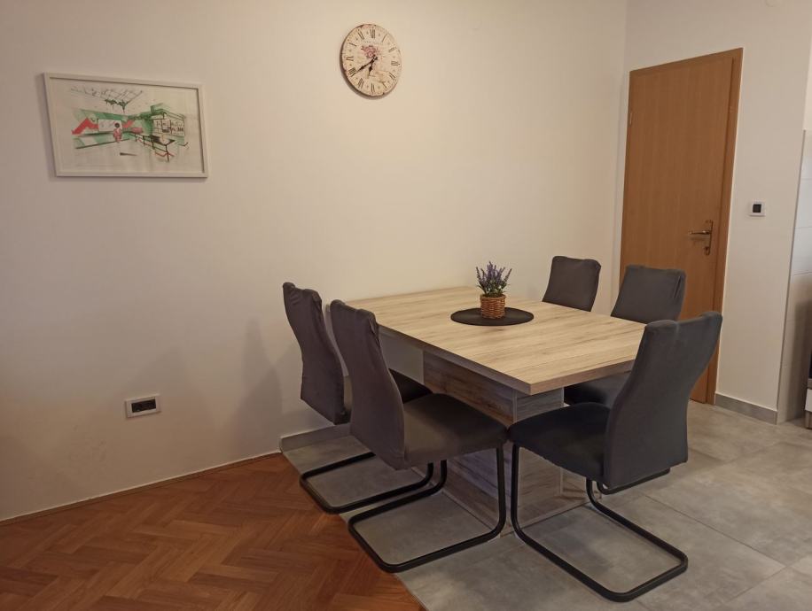 Stan se sastoji od hodnika, kupaonice, kuhinje, izbe, dnevnog boravka i sobe. Stan je neto korisne površine 55 m2 (50 m2 stambeni dio + 5 m2 balkon) te je u potpunosti namješten i opremljen sa novim kućanskim aparatima i novim pokućstvom.