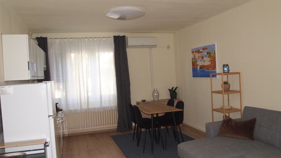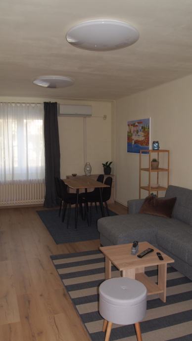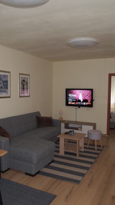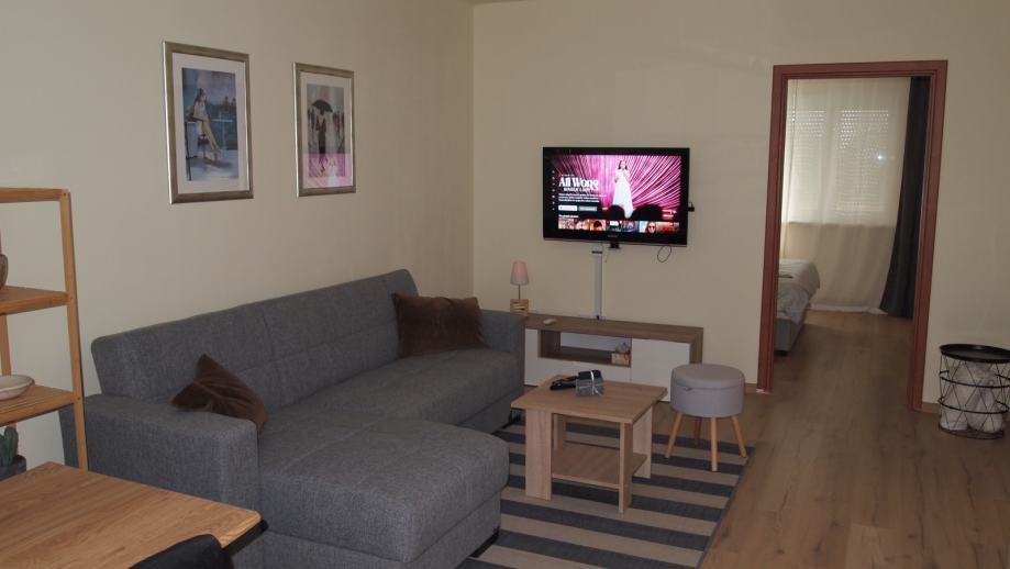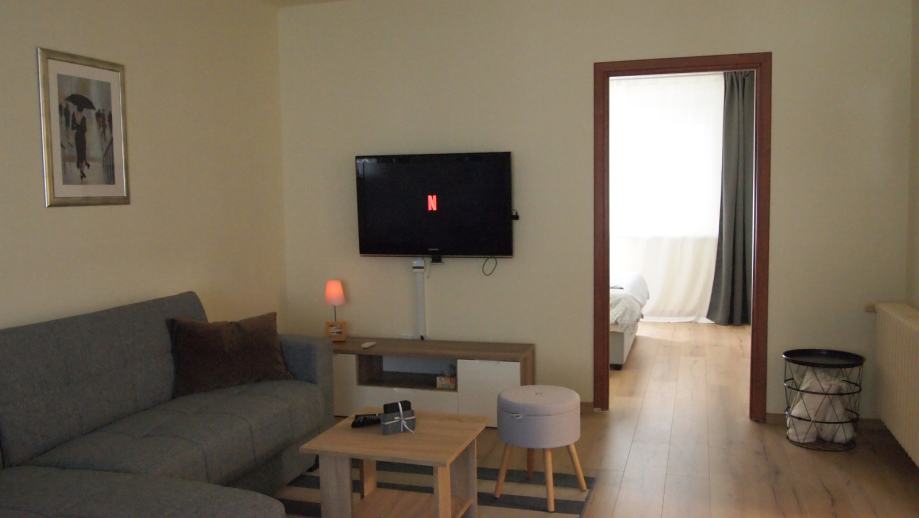 Sadržaj stana: internet, LCD TV(Netflix, MaxTV), klima uređaj, renoviran, namješten i opremljen novim namještajem i kućanskim uređajima (perilica rublja, pećnica, napa, hladnjak i zamrzivač, štednjak).
