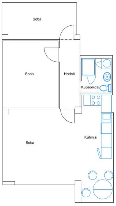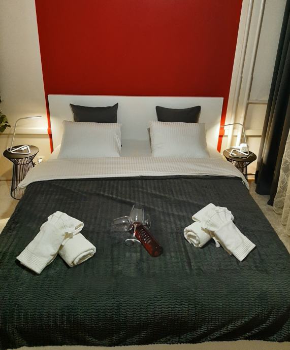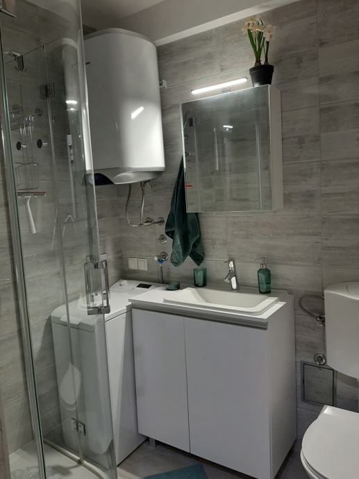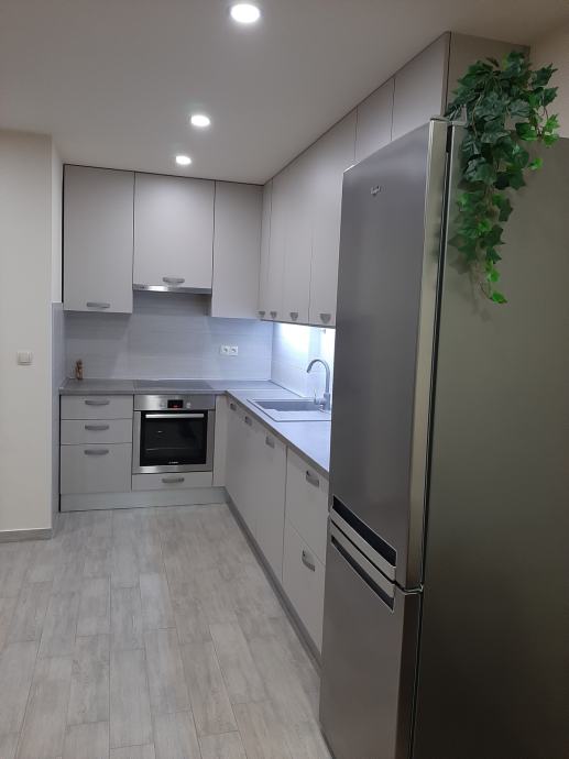Stan se sastoji od prostranog dnevnog boravka, moderne kuhinje s blagovaonicom, spavaće sobe, radne/dječje sobe te kupaonice i hodnika. Stan je ukupne površine 58 m2. Grijanje je gradsko - centralno, dvije jedinice klima uređaja. Zgrada ima lift.
