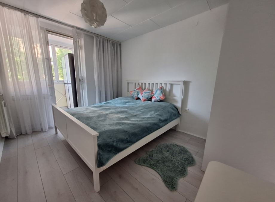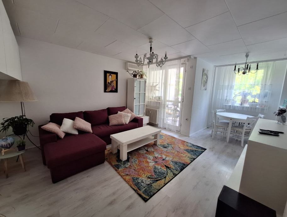 Stan se sastoji od dvije spavaće sobe, dnevnog boravka s blagavaonicom, kupaonice, zasebnog wc-a, dva balkona i jedna lođa. Besplatan parking ispred zgrade.