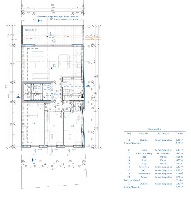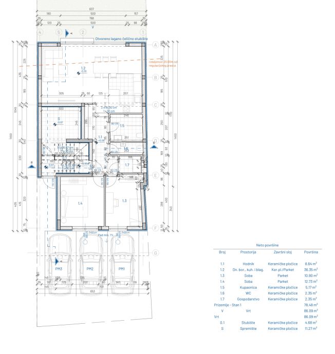 Prodaja NOVOG trosobnog prizemnog stana sa vrtom u sklopu urbane vile! Zgrada se nalazi na odličnoj lokaciji JUG II, u blizini osnovne škole, vrtića ( 100m) i svih potrebnih sadržaja za ugodan obiteljski život. Vrhunski moderan dizajn, funkcionalan raspored prostorija, kvalitetna gradnja, najbolji dostupni materijali i oprema. Stan je neto površine 77,50 m² a sastoji se od predsoblja 8,64 m², kupaonice 4,97 m², mali WC 2,23 m², ostave 2,02 m² , spavaće soba 1 12,73 m², spavaće soba 2. 10,79 m², dnevnog boravka - kuhinje i blagovaonice 36,09 m² sa izlazom na terasu i vlastiti vrt od 80 m². U cijenu stana je uračunato i pripadajuće parkirno mjesto ispred zgrade kao i ostava u prizemlju! Orijentacija stana je istok - zapad.