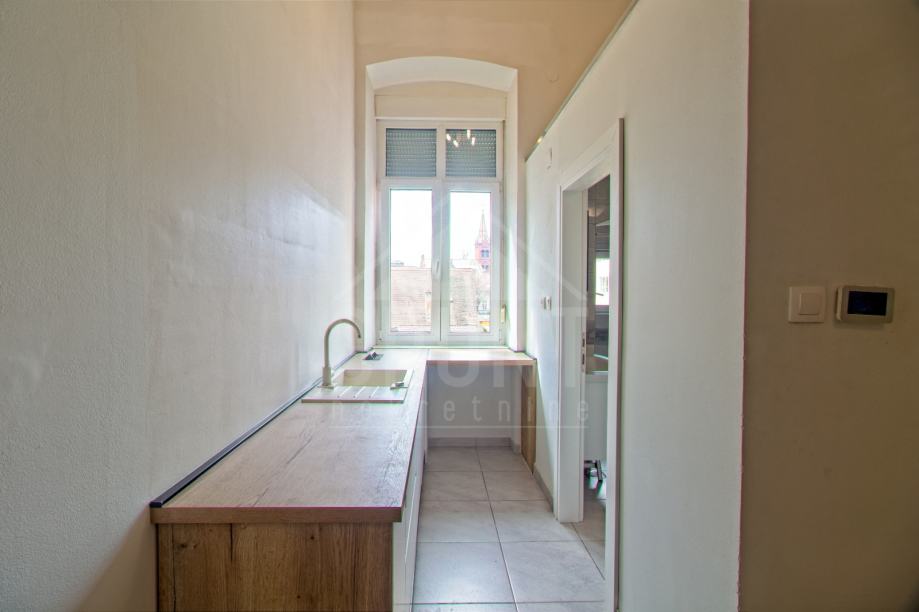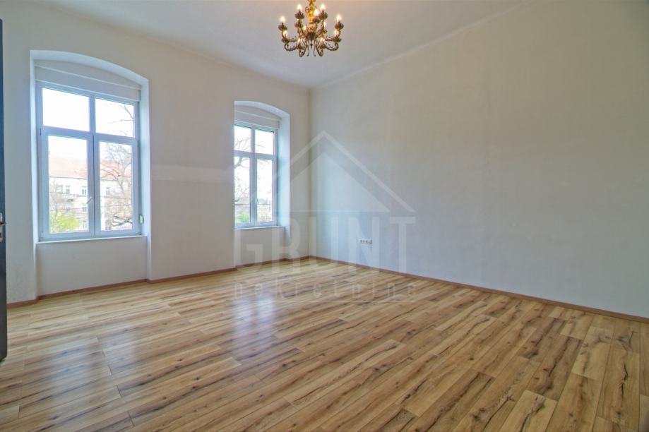Ovaj predivni secesijski stan, stambene površine 90 m2, se nalazi na prvome katu zgrade u Kapucinskoj ulici sa predivnim pogledom na Sakuntala park.