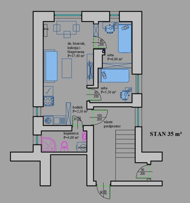 Stan: Dvosoban - 35.00 m2 Osijek centar - REZERVIRANO (prodaja)