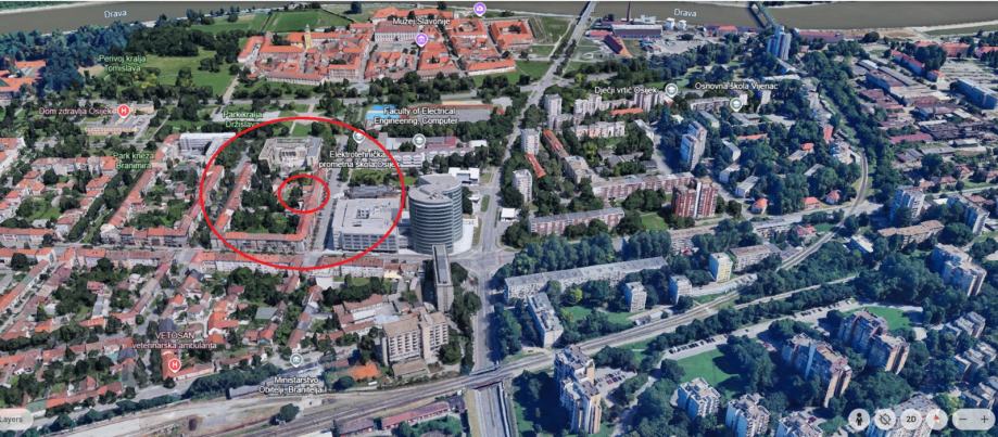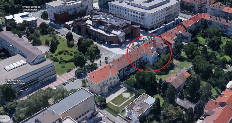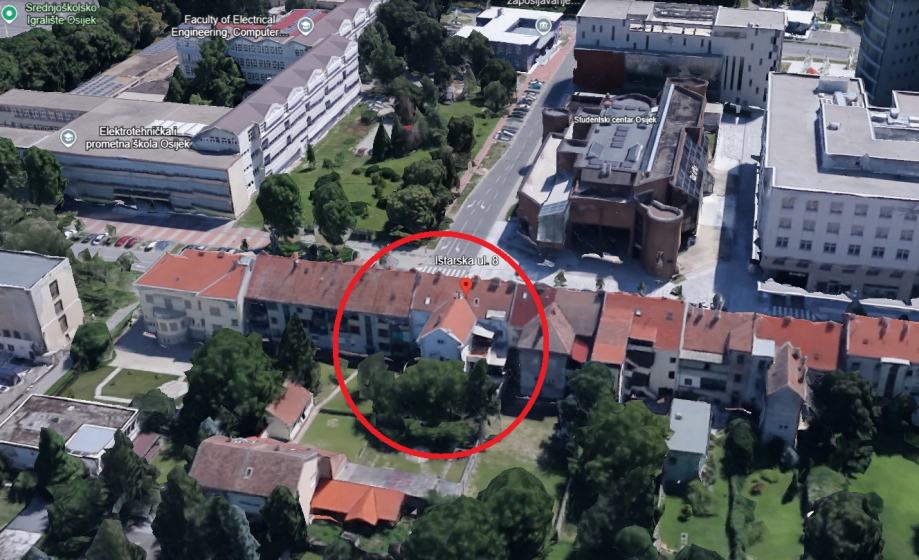Stan se nalazi preko puta Studentskog centra u blizini Srednjoškolskog igrališta, neposredna blizina Osječke Tvrdje, Sveučilišnog kampusa.
