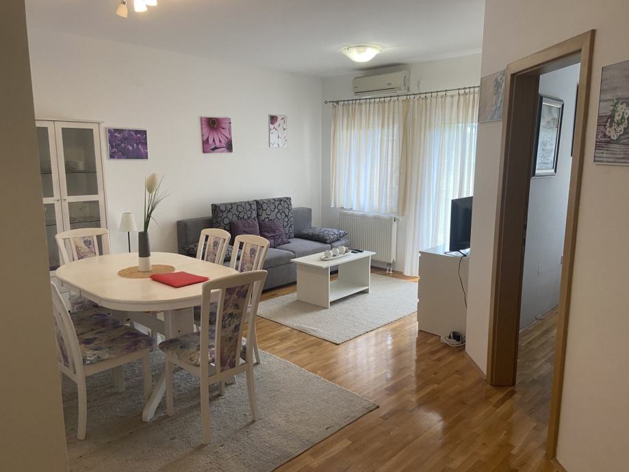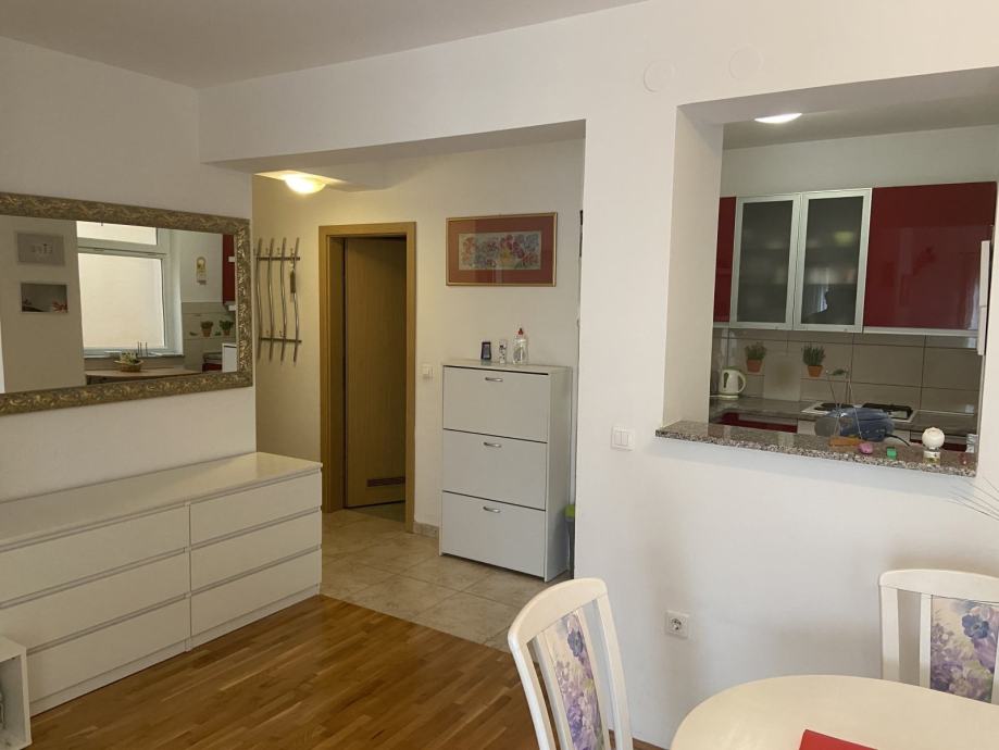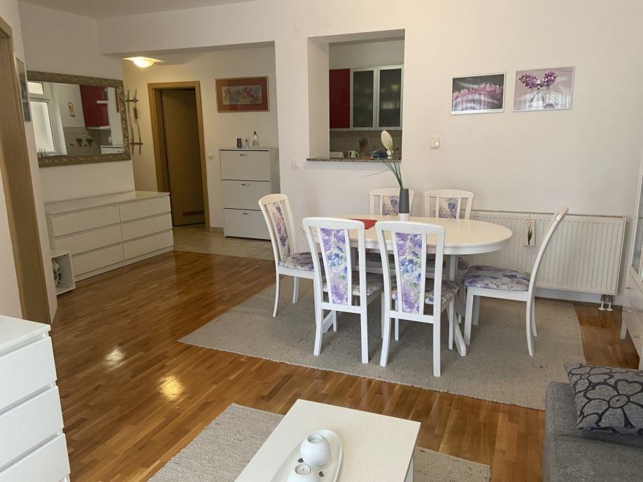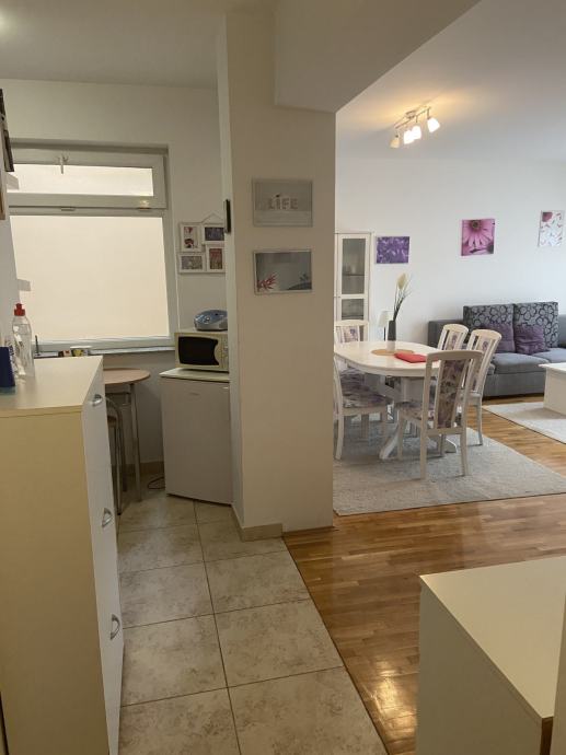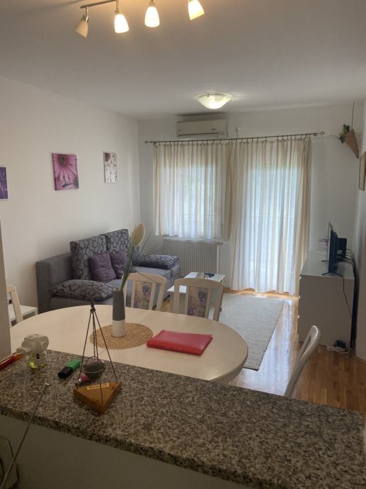 U ponudi za najam je atraktivan i kompletno uređen dvosobni stan u novijoj gradnji na početku Dubrovačke ulice, ukupne stambene površine 44,53 m2. Stan se nalazi na 1. katu stambene zgrade. Sastoji se od dnevnog boravka povezanog s blagovaonicom i kuhinjom (otvoreni koncept), spavaće sobe, kupaonice, hodnika i lođe. Stanu pripada i garažno mjesto u podzemnoj garaži zgrade.