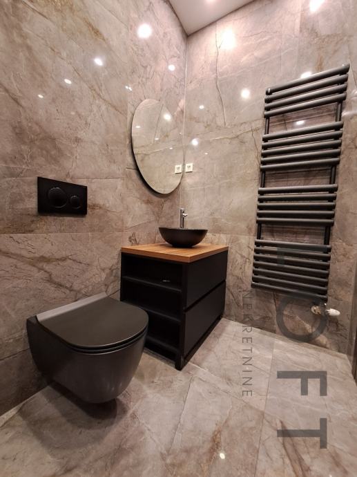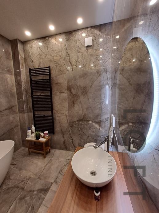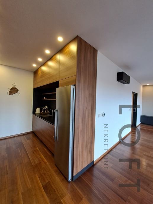 - namještaj po mjeri izrađen od vrhunskih materijala (pet mat - bez otisaka prstiju) i compact (unutarnja i vanjska kuhinja)