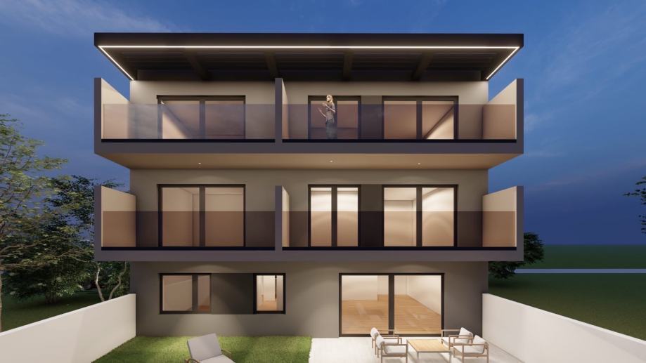 Zgrada će biti građena kvalitetnim materijalima, podovi su kombinacija parketa i keramičkih pločica, PVC vanjska stolarija s električnim podizačima roleta, kvalitetne sanitarije. Postoji mogućnost odabira podova u cijelom stanu.