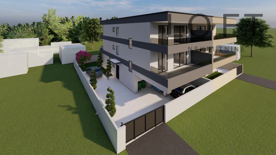 Dostupno 3/6 stanova, četverosobni stan u prizemlju 102,60 m2 , te četverosobni s terasom na 1. katu 104,17 m2.
