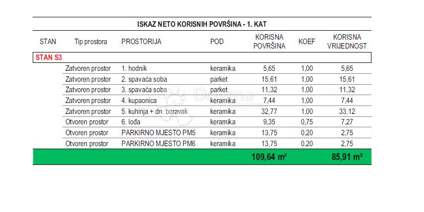 Površina stana je 85,91 m2 korisne vrijednosti. Zgrada ima lift što olakšava prijenos stvari i kretanje do stana.