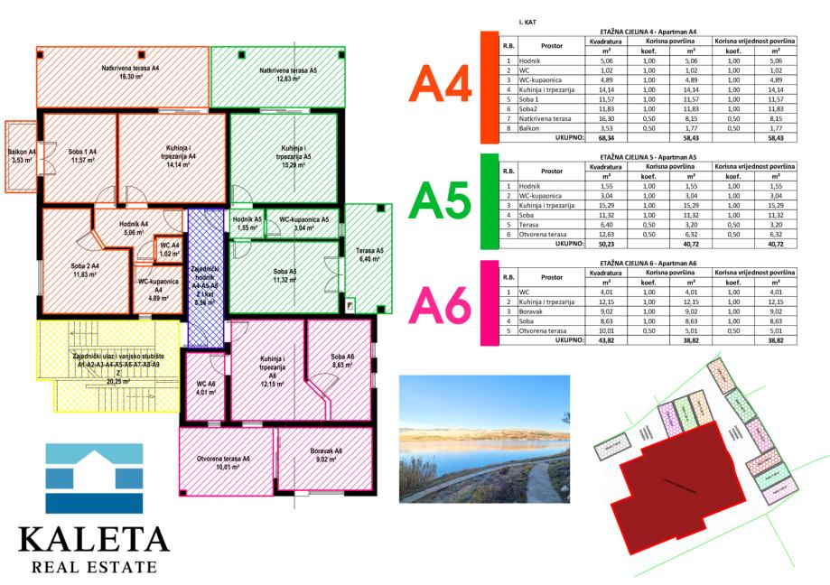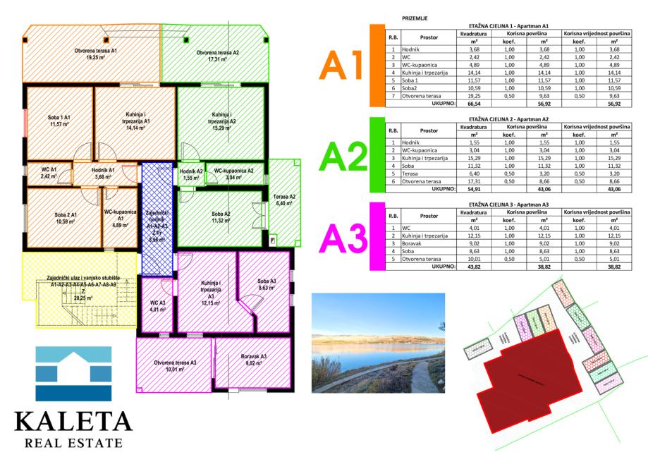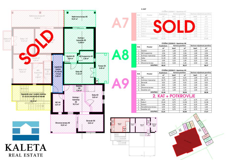 Popis svih dostupnih stanova i njihovih neto kvadratura: