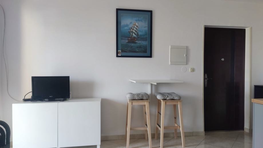 Sastoji se od velikog dnevnog boravka s kuhinjom i blagovaonicom, prostranom spavaćom sobom, kupaonica s wc-om, hodnika i prostrane lođe s pogledom na more.