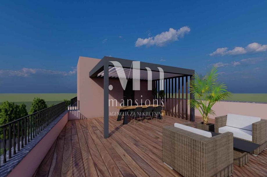 terasa s vrtom (prizemlje), natkrivena terasa (1. kat) ili krovna terasa (2. kat).