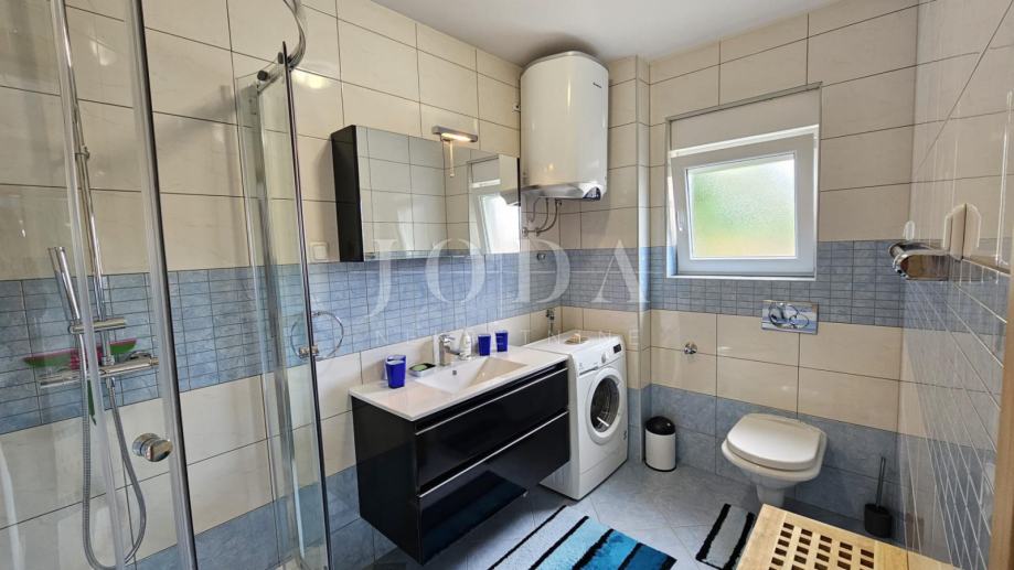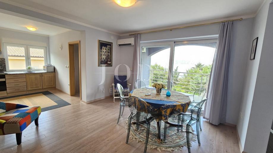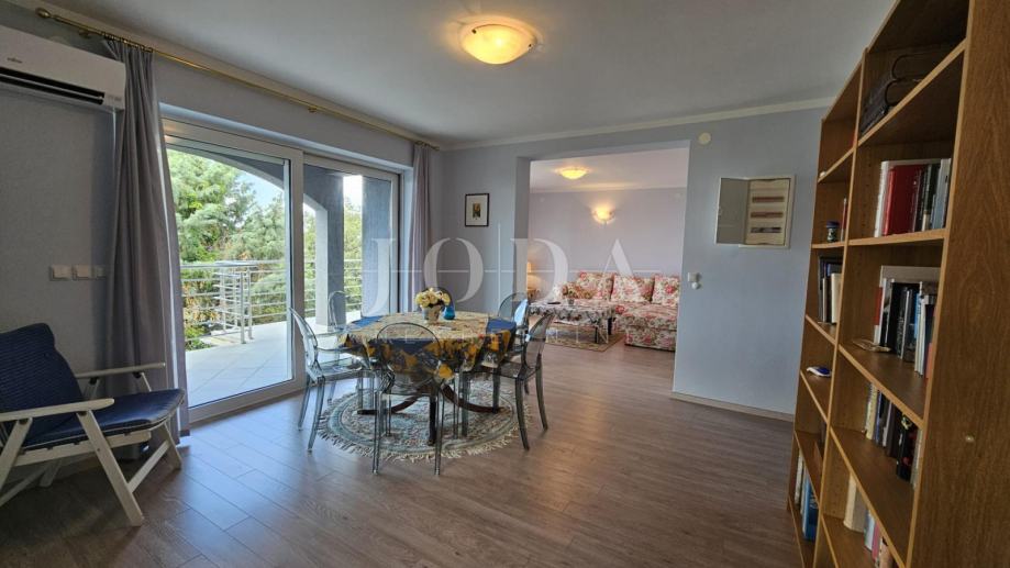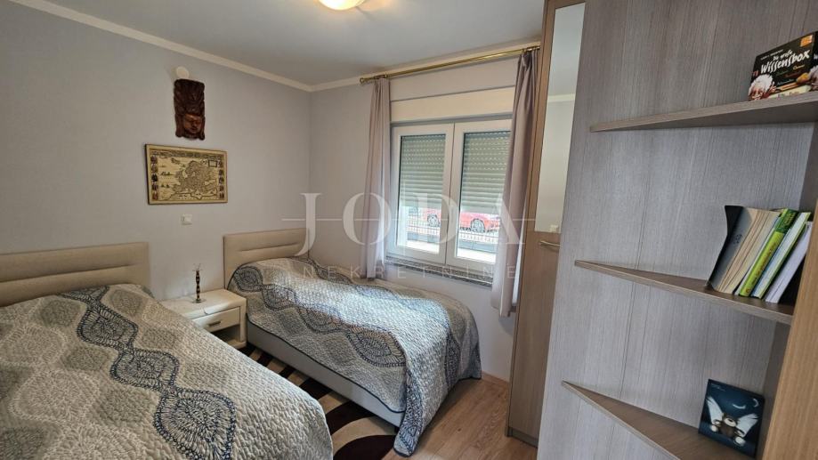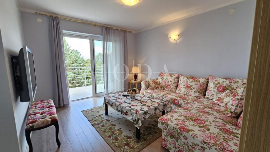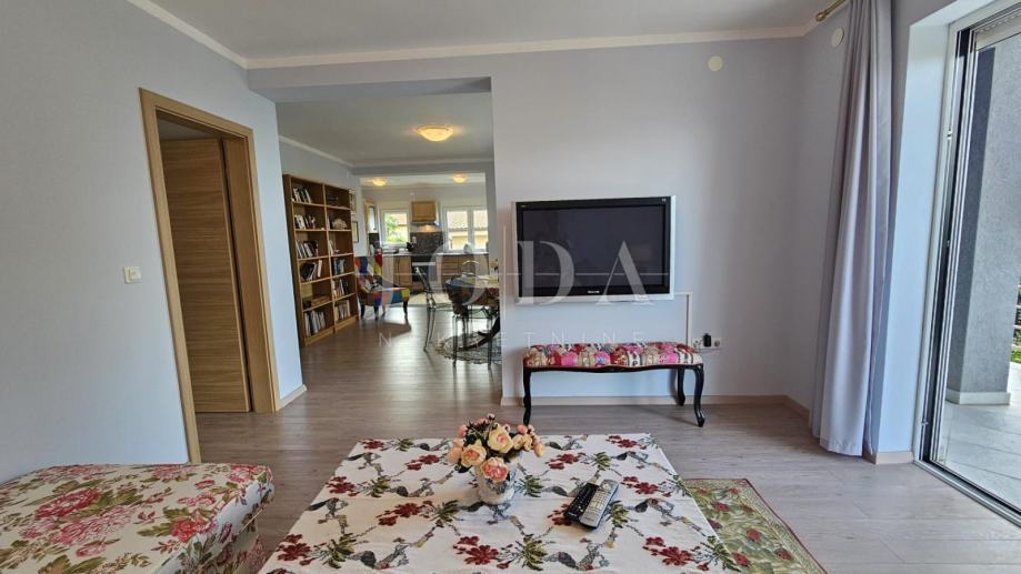 U manjem objektu sa 4 stana ,na prodaji je dvosobni stan sa dnevnim boravkom velikom južnom(natkrivenom terasom) te velikom garažom sa spremištem.Fantastična lokacija 30metara od plaže,odličan objekt sa uređenom okućnicom i vrlo malo korištenim stambenim prostorom.