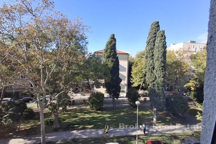 Ovaj šarmantni i svijetli stan smješten je na trećem katu zgrade i nudi pogled na more, okružen mirnim zelenilom i prostranim parkovima, savršen za ljubitelje prirode i urbanog komfora.