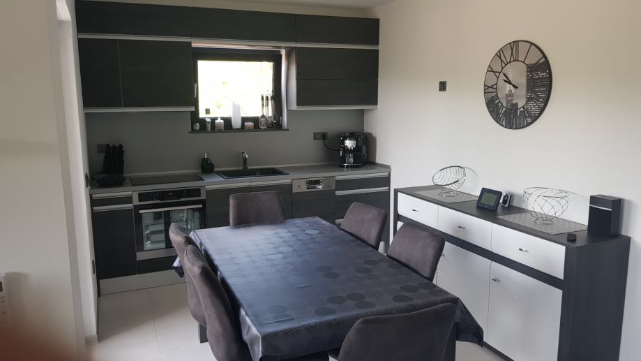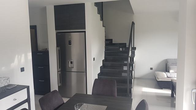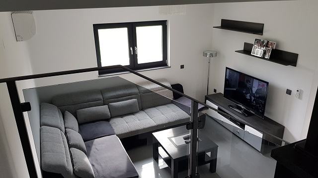 Dvoetažni stan je opremljen sa 4 klima jedinice u funkciji grijanja i hlađenja, izveden je 10cm ETICS sustav fasade i posjeduje Energetski certifikat A razreda, PVC stolarija sa troslojnim izo staklom, roletema sa motorima, komarnicima, ulazna vrata su sa tipkovnicom za kontrolu pristupa, crni kamen (impala) u hodniku i stepenicama, pločice dim 120cm x 60cm, staklene ograde stepenšta, balkona i ulaza, namještaj rađen po mjeri (namještaj nije u cjeni).