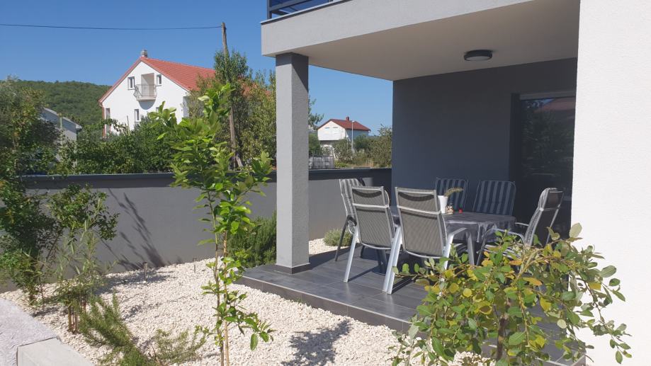 U novo izgrađenoj kući prodaje se potpuno opremljen i namješten dvoetažni 4 sobni stan sa pogledom na more udaljen cca 80m od mora i prekrasne pješćane plaže na otoku Pašmanu u mjestu Pašman. Sastoji se iz 3 sobe, 3 balkona, dvije kupaonice sa Wc-om, dnevnog boravka, kuhinje, blagovaonice, natkrivene terase, dva hodnika i garaže - 121,15 m2 korisne vrijednosti. (vidi tlocrt u prilogu).