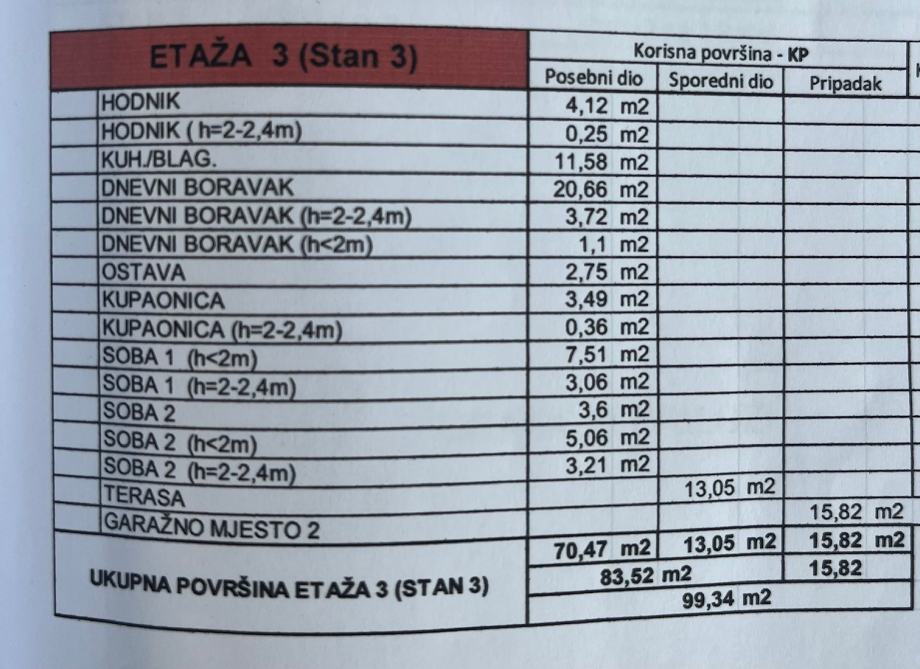 PROSTORIJE STANA: vidjeti priloženi tlocrt i popis prostorija sa površinama