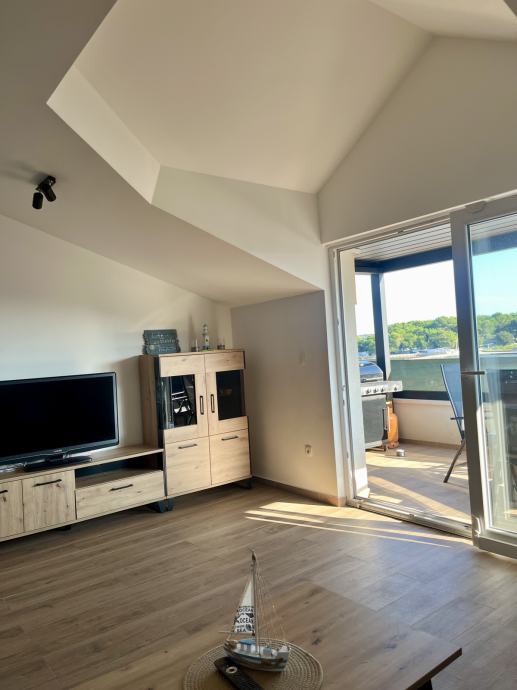 Prodaje se odličan dvosobni stan-penthouse na 2. katu zgrade sa garažom, novogradnja u Pašmanu, uvala Lučina sveukupne bruto površine 99,34 m2.