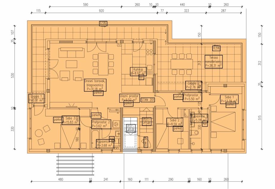 Stambene povrsine 107,46 m2