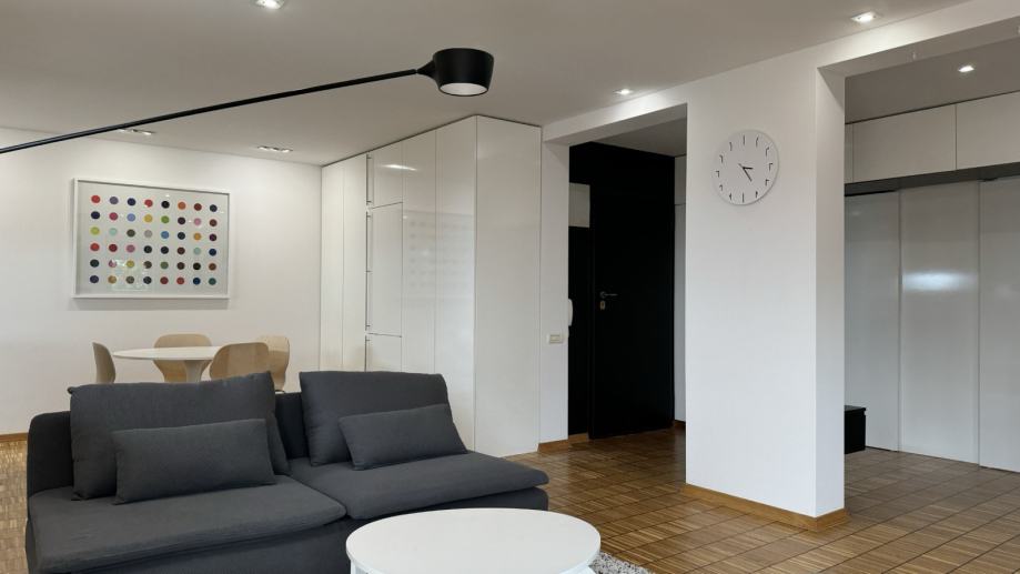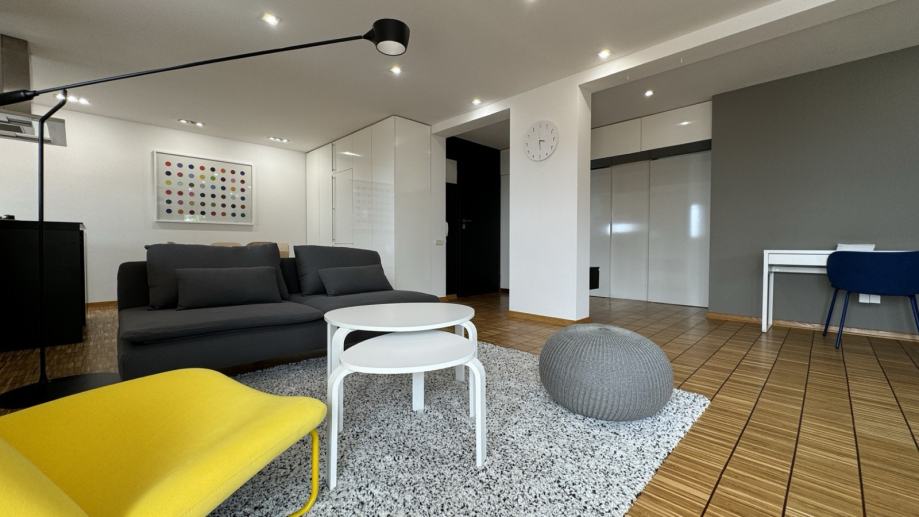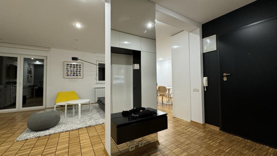 Iznajmljuje se moderan potpuno namješten stan na prvom katu u maloj zgradi od pet stanova na Perjavici 80B.