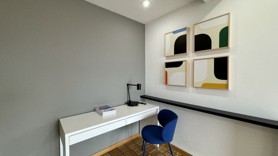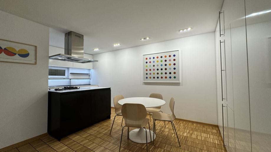 Sastoji se od spavaće sobe,velikog dnevnog boravka (u jednom djelu sa radnim stolom) te spojenom kuhinjom i blagavaonom,kupaona sa kadom i duplim umivaonikom te balkonom na koji se izlazi iz kuhinje i dnevne sobe.