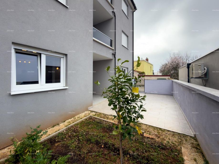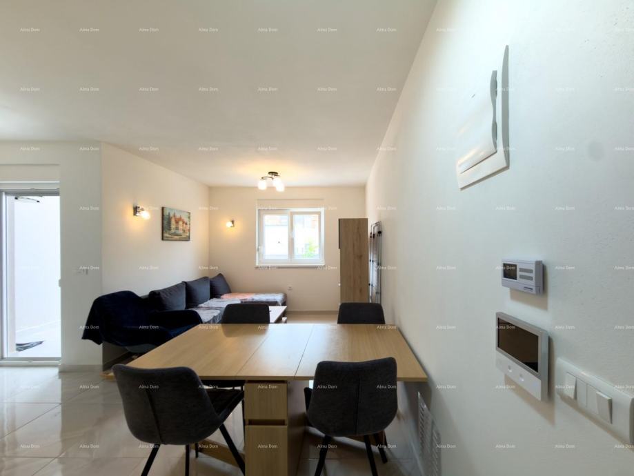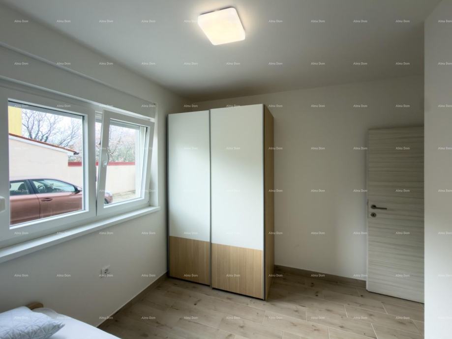 Stan se nalazi u prizemlju novogradnje i sastoji se od dvije spavaće sobe, kupatila, kuhinje, blagovaonice i dnevnog boravka iz kog se izlazi na natkrivenu terasu i vrt.