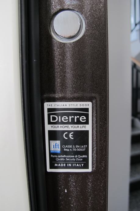 - Ulazna vrata su protuprovalna (zaključavanje u 10 točaka) i protupožarna vrhunskog talijanskog proizvođaća „DIERRE“