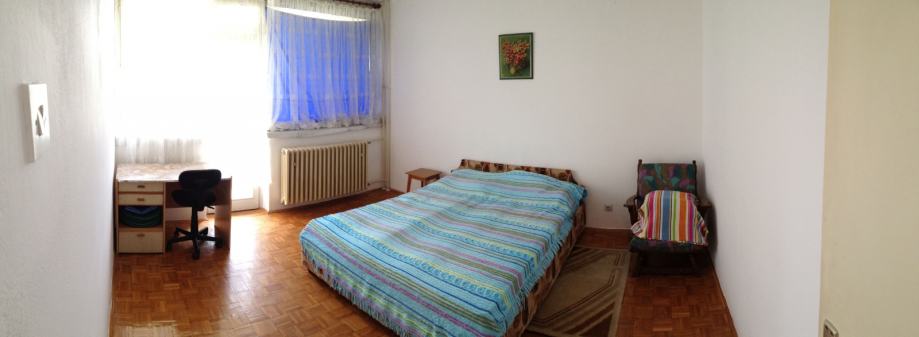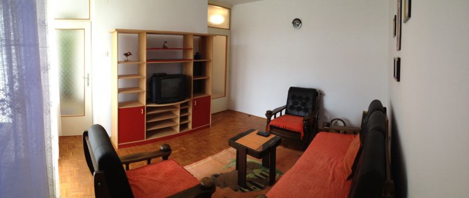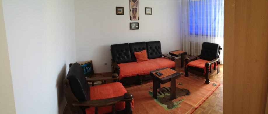 Stan je u potpunosti opremljen. Ima dnevni boravak, spavaću sobu s dva kreveta (na fotografiji je samo 1 krevet), kuhinju, kupaonu, hodnik, ostavu, podrum i dva balkona. Grijanje je centralno. Nalazi se u kvartu Sajmište, 15 minuta hoda do fakulteta, a do centra grada 10 minuta. U neposrednoj blizini su dva velika trgovačka centra (Plodine i Idis), te jedan manji dućan u susjednoj zgradi.