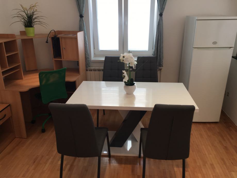 Prednost ozbiljnim i zaposlenim osobama. Stan je potpuno obnovljen, nova stolarija (PVC trostruka stakla) nova fasada, svi soboslikarski i ličilački radovi), veći dio namještaja.