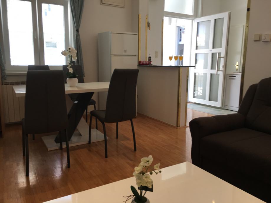 Ovaj vrlo lijepi i ugodan stan (1. spavaća + 1. dnevna soba) smješten je u samom centru Zagreba, 4. minute hoda (300m) do glavnog Željezničkog kolodvora i 8. minuta hoda (600m) do glavnog zagrebačkog trga! Parkirno mjesto je uključeno u cijenu po sistemu prava prvenstva, parkiralište i ulaz su zaštičeni! Mogućnost dobijanja povlaštenog parkiranja (crvena zona)