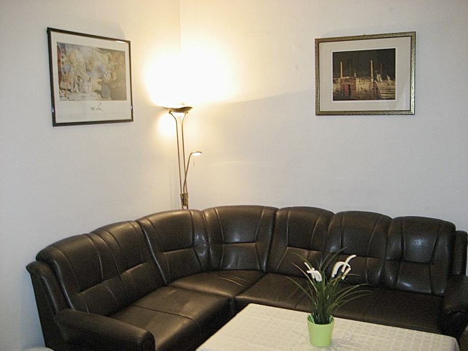 The living room contains a sofa where can sleep up to two people. The living room contain as well as a LED TV with many satellite channels, wireless (WiFi), HiFi, a desk for the computer and cabinets, dining table with five chairs and ambient antique stove on wood.