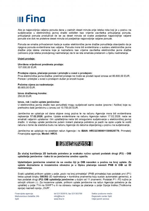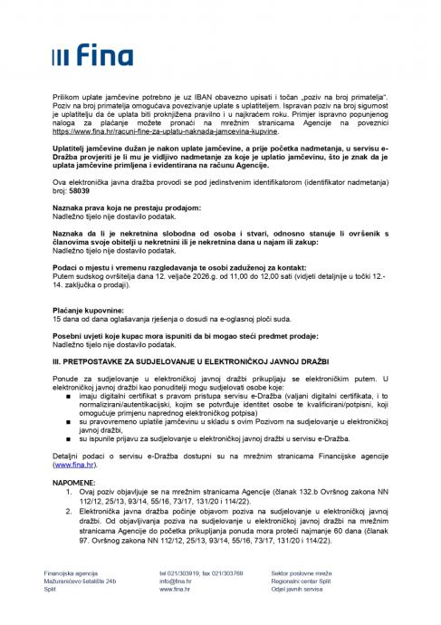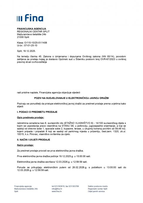 Prva elektronička javna dražba počinje 19.12.2025.g. u 15:00:00 sati.