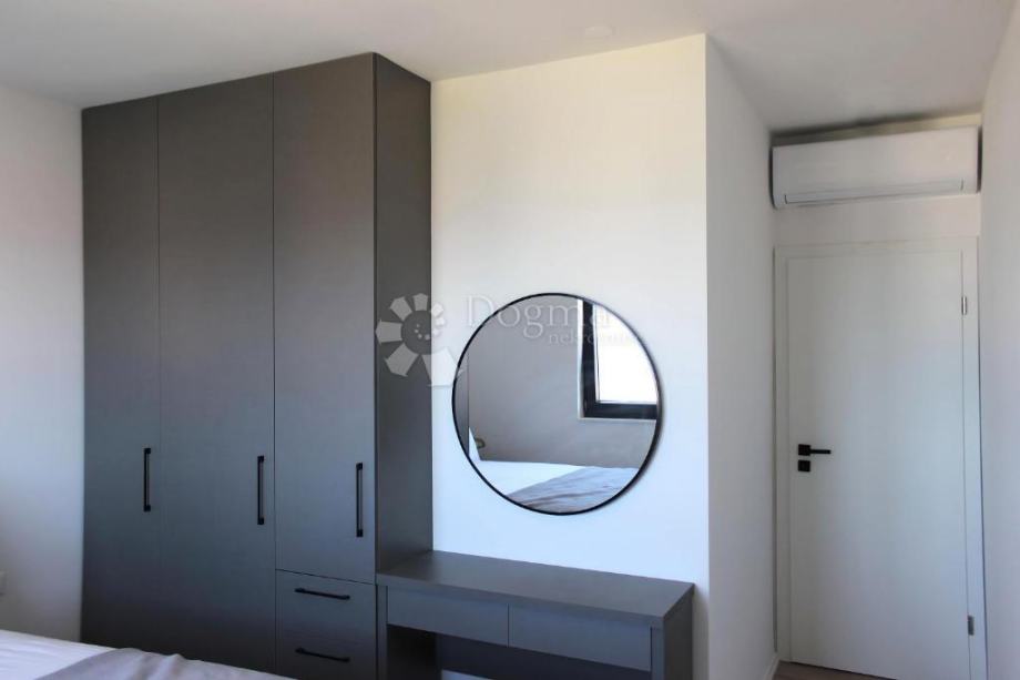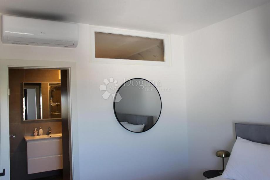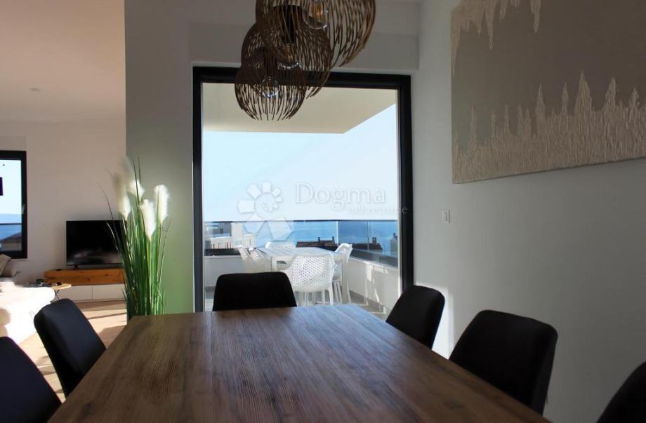 Stan se odlikuje izvrsnom organizacijom prostora i obiljem prirodne svjetlosti. Sve prostorije, osim kupaonica, imaju otvoren pogled na more, što dodatno doprinosi osjećaju udobnosti i luksuza. Jedna spavaća soba ima izlaz na vlastiti balkon, dok je dnevni boravak povezan s prostranom lođom idealnom za uživanje u pogledu i opuštanje.