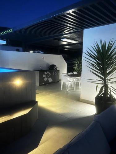 Posebna prednost ove nekretnine je ekskluzivna krovna terasa, potpuno uređena i opremljena za uživanje tijekom cijele godine. Terasa nudi: