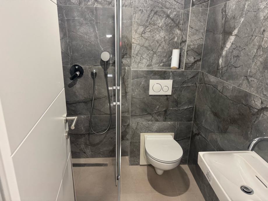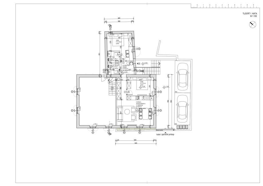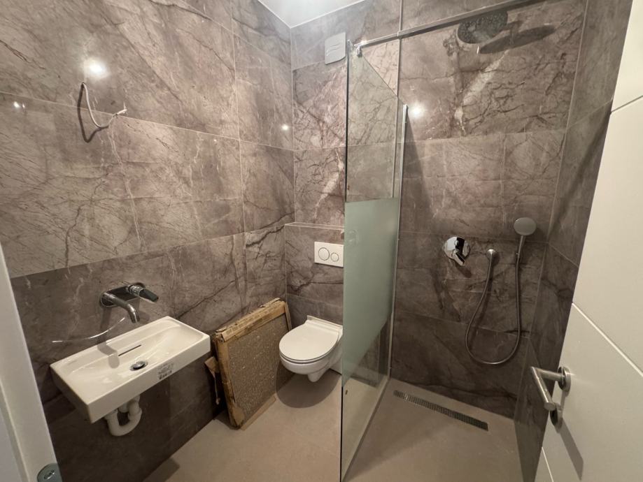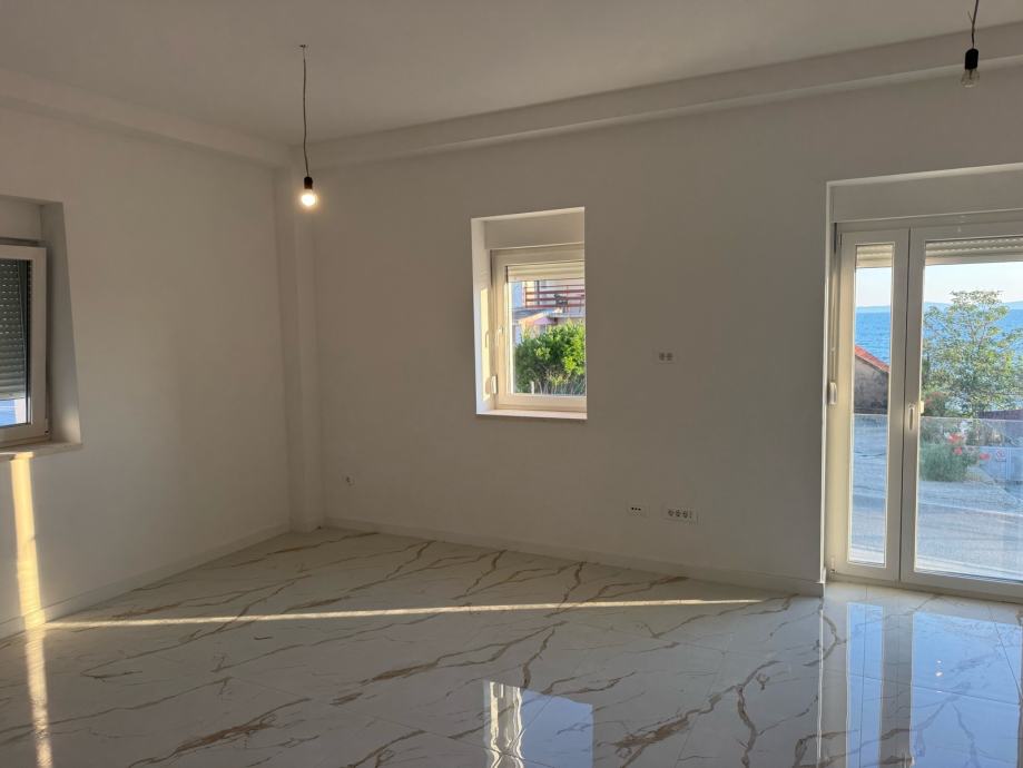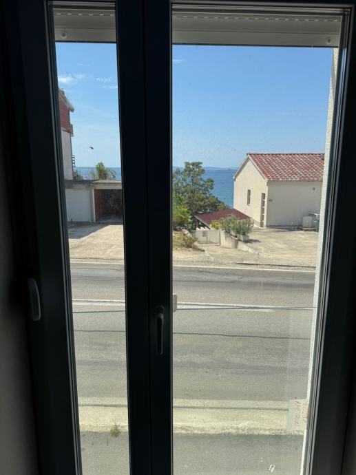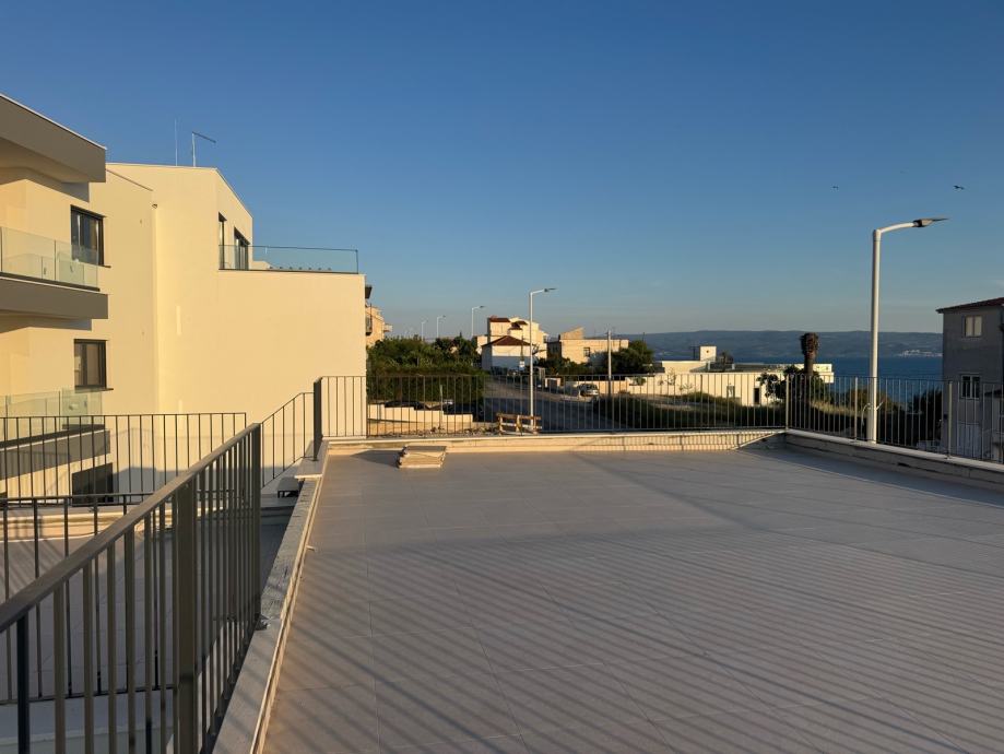 Prodaje se dvosobni stan na prvom katu 70m2 kojemu pripada krovna terasa od 80m2, sa otvorenim pogledom na more. Stanu pripada jedno parkirno mjesto.