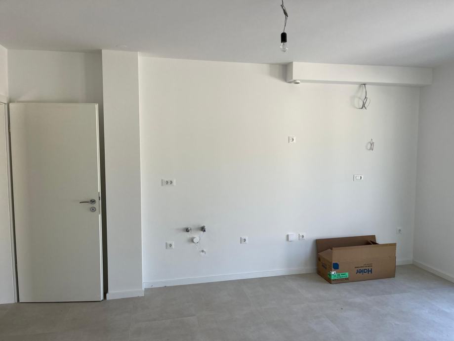 Stan u zgradi A, prizemlje, ukupne stambene površine 43,40 m2. Stanu pripadaju spremište u podzemnoj garaži, garažno parkirno mjesto, terasa i prostrana vrtna terasa (117 m2) ukupne NETO PRODAJNE POVRŠINE 70,00 m2.