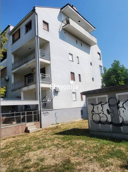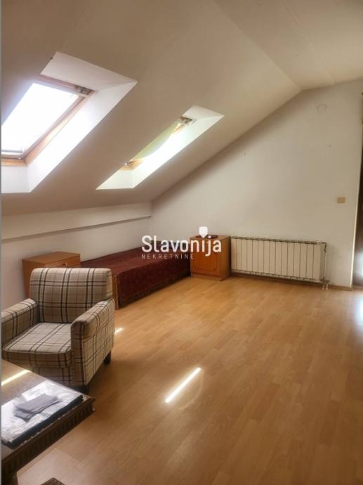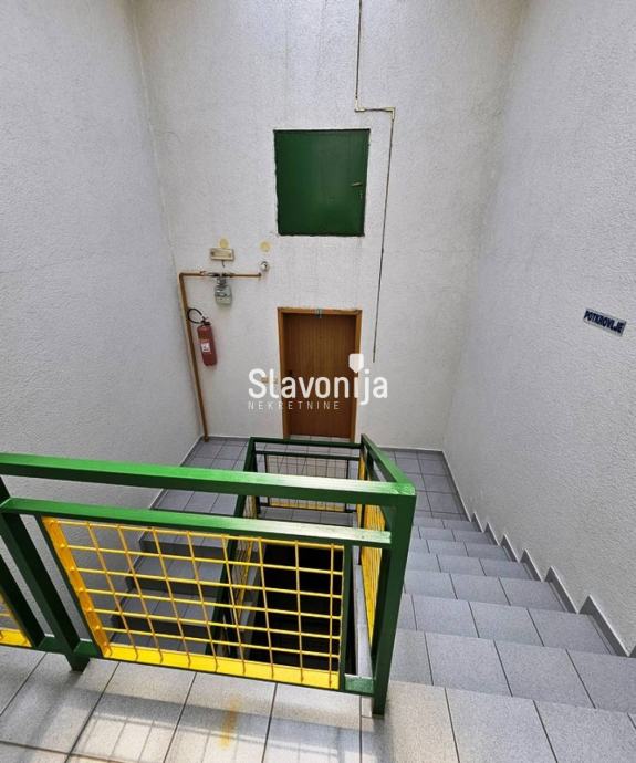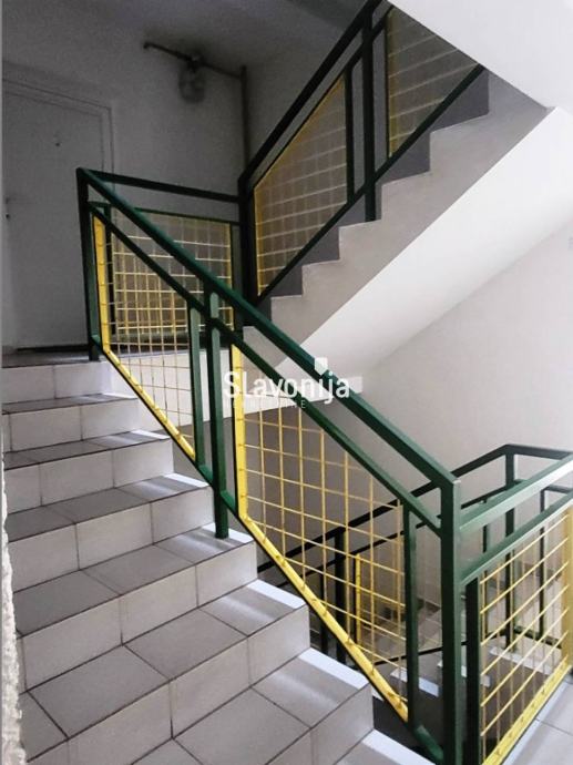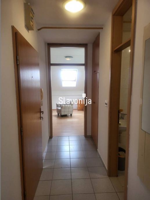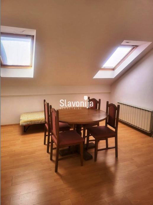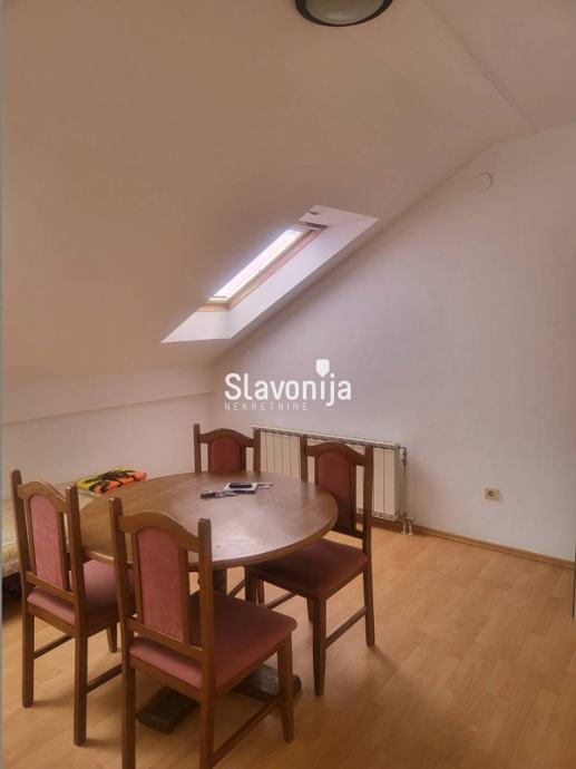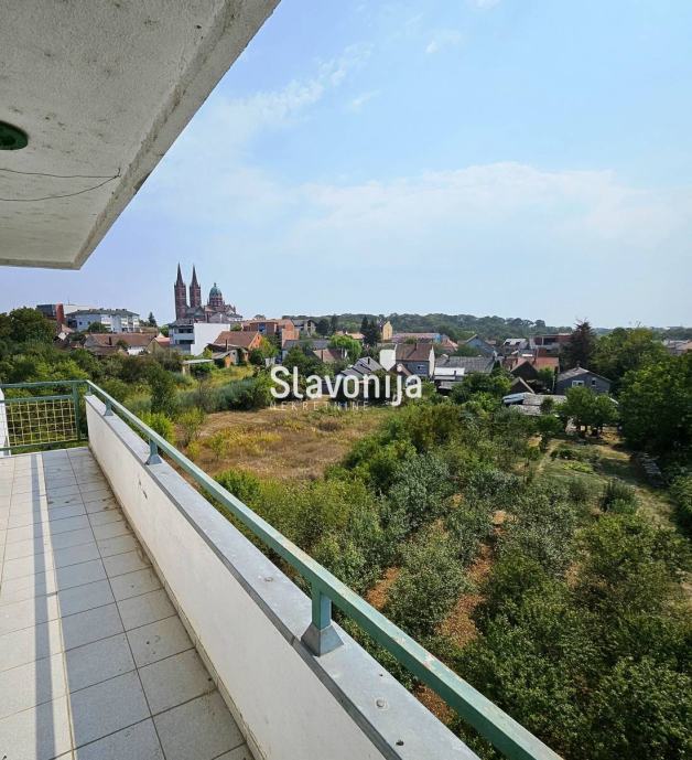 Stan se nalazi u mirnoj stambenoj zgradi na zadnjem katu koji pruža predivan pogled na đakovačku katedralu kako s balkona tako i iz kuhinje i spavaće sobe.