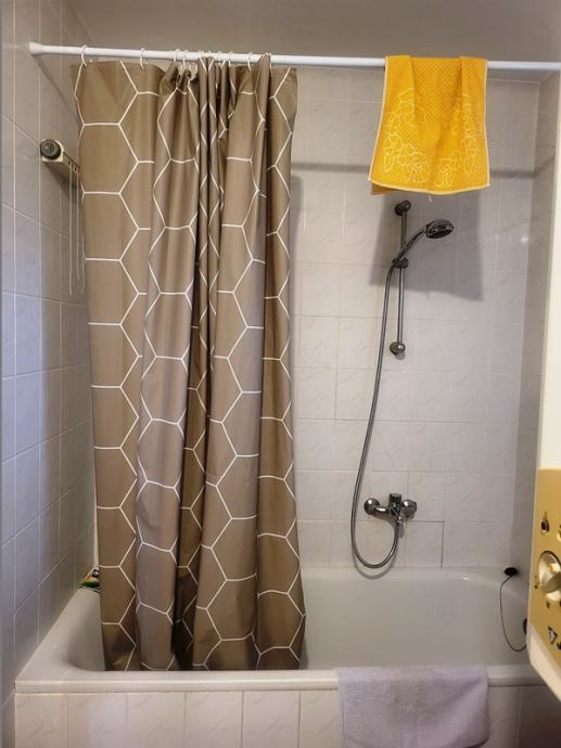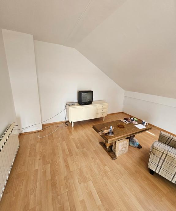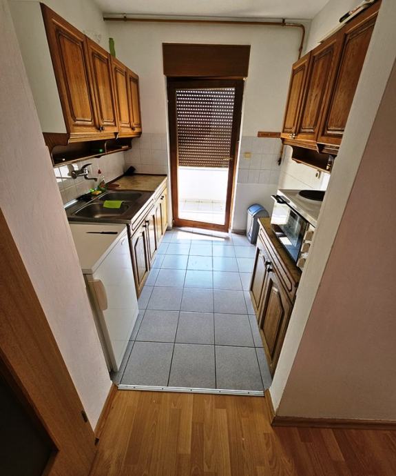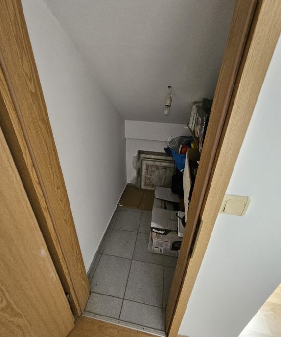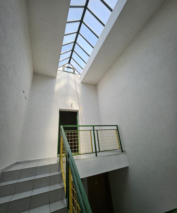 Stan se sastoji od prostranog hodnika, kupaonice s kadom, kuhinje koja ima izlaz na balkon, blagavaonice , dnevnog boravka, spavaće sobe koja također ima izlaz na balkon i dvije ostave koje se nalaze pored kuhinje.Spavaća soba je prostrana -može se pregraditi kako bi se dobile dvije spavaće sobe.Stan se prodaje polunamješeten.Stanu pripada i prostorija/šupa u podrumu kao i zajednički prostor za sušenje veša odmah pored stana.